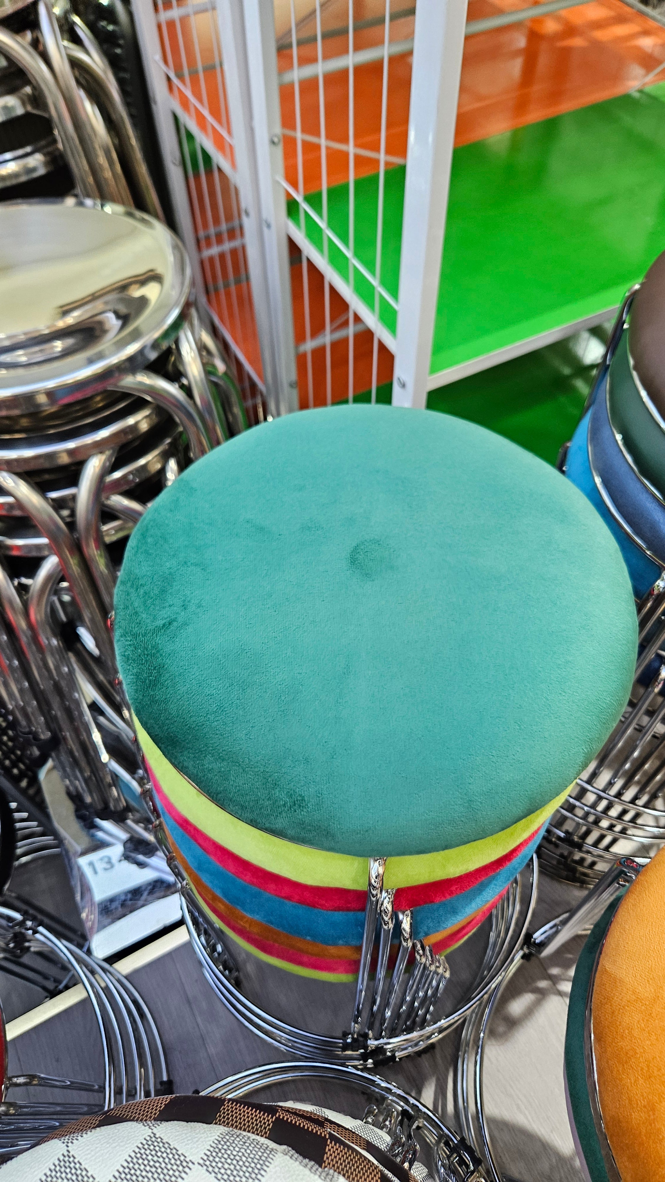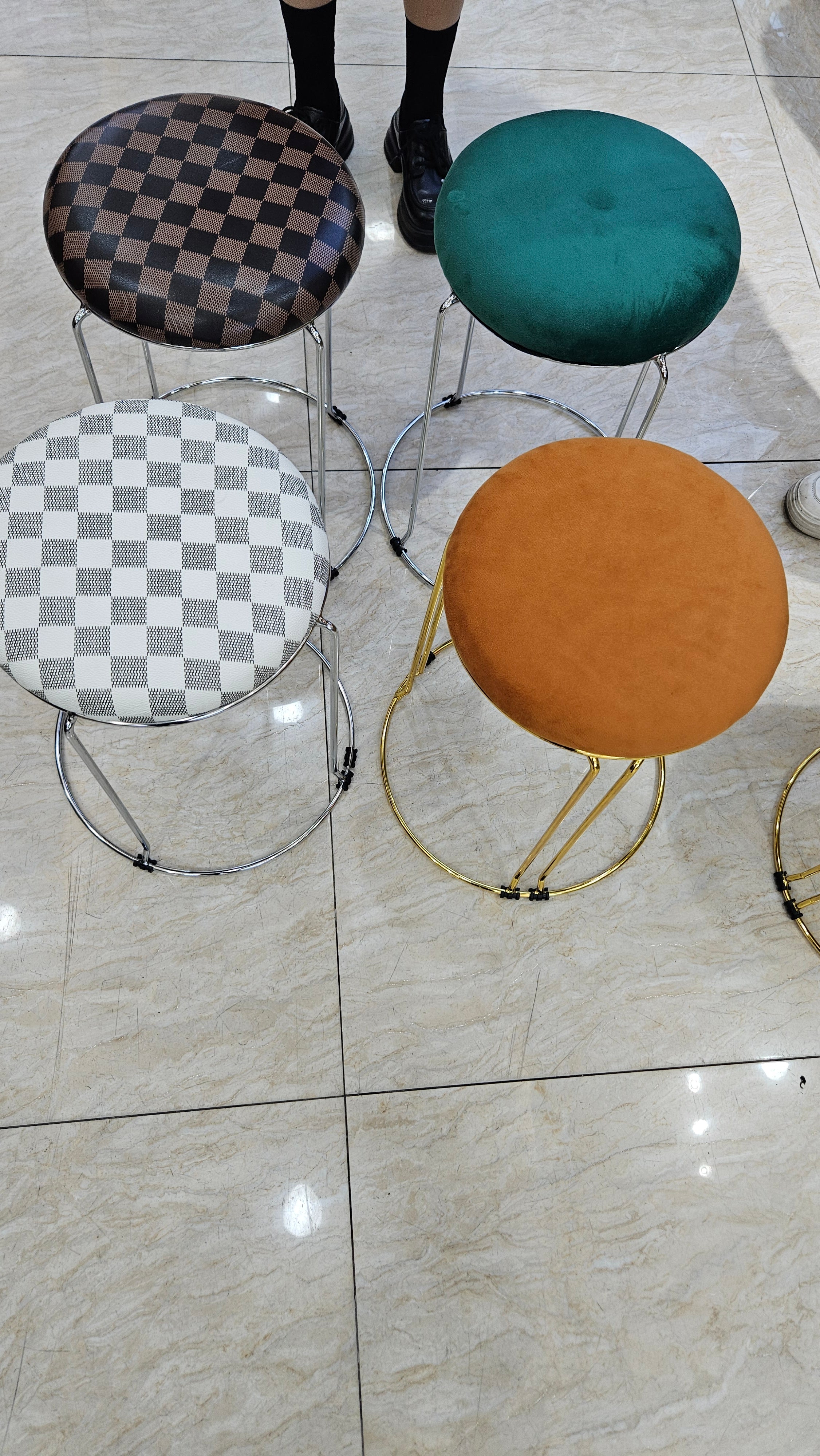 Add a touch of contemporary luxury to any room with this chic, lightweight stool. Featuring a sleek, metallic gold-finished frame paired with a plush, velvet-textured seat in a rich green tone, this stool is the perfect marriage of style and function. Whether you need a sophisticated vanity seat, a pop of color in the living room, or a functional accent piece for small spaces, this stool delivers high-end aesthetics without the bulk.