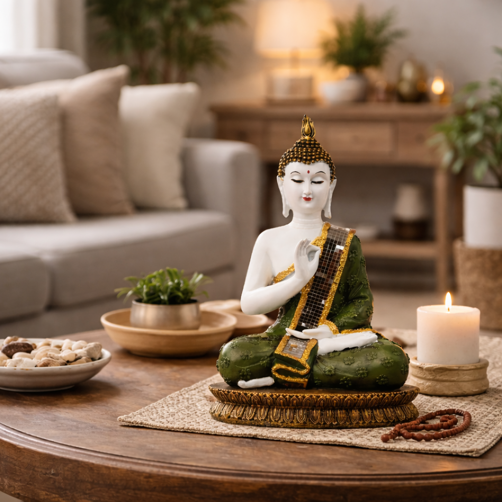 Bring a sense of profound peace and spiritual grounding to your living space with this beautifully crafted 11-inch Seated Prayer Buddha. Designed to serve as a focal point for mindfulness, this figurine blends traditional artistry with a timeless aesthetic, making it an essential addition to any modern or traditional home. Whether you are enhancing a dedicated meditation room, styling a Pooja altar, or simply looking for a sophisticated decorative accent, this statue radiates a calming energy that transforms the atmosphere of any room.