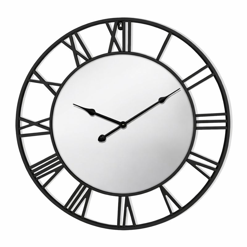 Elevate your home décor with our sleek and elegant 60 cm black clock featuring a striking mirror face. Its bold design, highlighted by a stunning black finish and contemporary aesthetic, makes it a statement piece in any room. The clock's high-quality, heavy metal frame ensures durability, while the silent, non-ticking movement adds functionality without disturbance. Measuring approximately 24 inches wide, this clock is perfect for upgrading your space or as a unique housewarming gift.