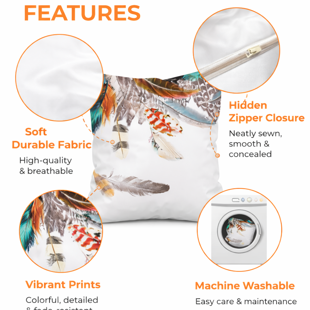 Modern Minimalist Feather Design Square Cushion Cover, 17 x 17 Inch Farmhouse Bohemian Decorative Pillowcase for Living Room Bedroom