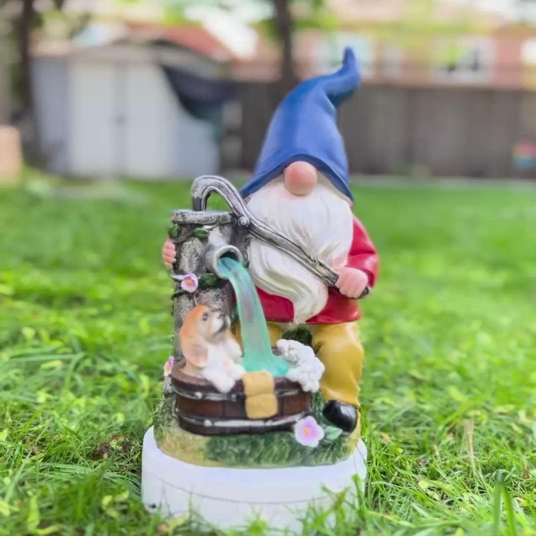 Blue Hat Bathing Dog Gnome With Pump - Polyresin Garden Statue With Solar LED Lights