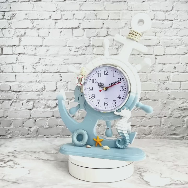 Wooden Anchor with Clock Decorative Tabletop Statue, Marine Decor, Cottage, Office, Bedroom, Living Room, Home Decoration, Gift